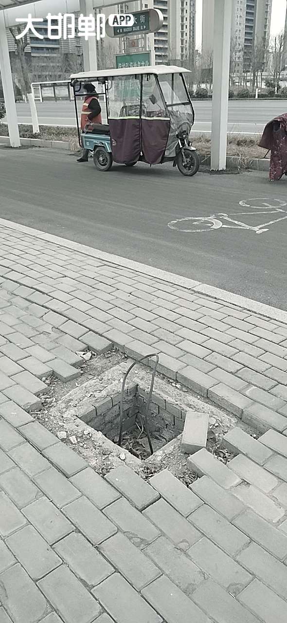 3月3日毛遂大街北仓路口东便道线缆井盖缺失。