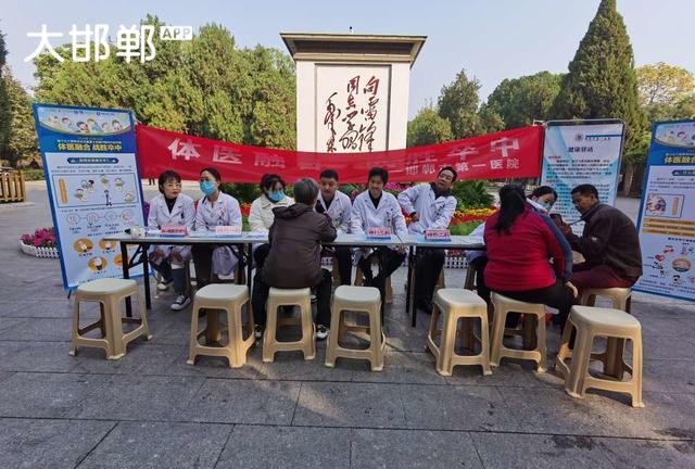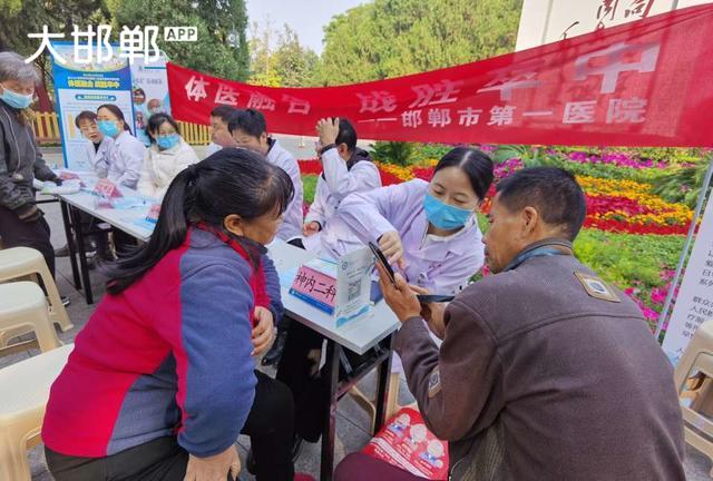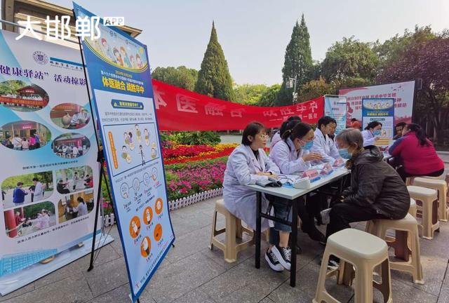 今天早晨,去丛台公园散步,看到公园里正在义诊。医务人员正在忙着给公园里晨练的老人降血压,接受咨询。为白衣天使点赞!