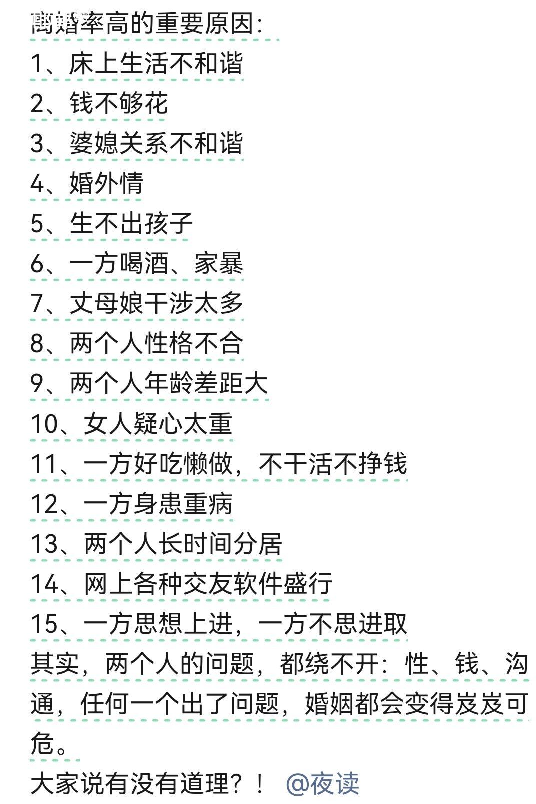 离婚率高的重要原因~认同吗?评论留言