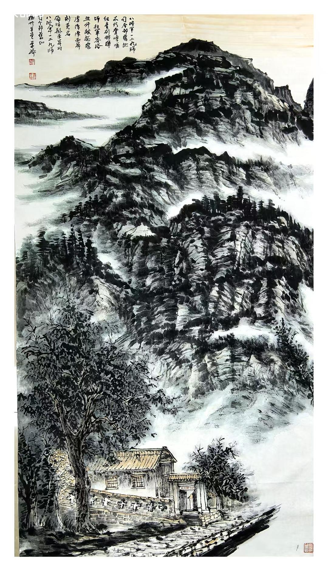 据悉,李琦先生与来自太行山沿线的河南、北京、河北、山西四省市文史研究馆馆员、研究员及特邀书画家一起,于今年四月中旬深入太行山区采风创作,以画笔抒写胸臆,用豪情晕染初心,创作了这一批主题鲜明、内涵丰富、气势恢宏的艺术作品。他在完成两幅国画的同时,还创作了两首诗,并以草书的形式予以呈现: