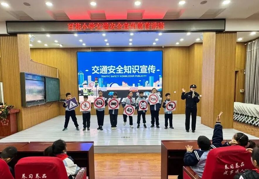 课堂上没有枯燥的条文,只有生动的动画视频、有趣的交通标志拼图游戏和惊心动魄却又发人深醒的真实案例。交巡警用通俗易懂的语言和生动鲜活的案例展开讲解。在交通标识标志识别环节,学生们代表手持限速、禁止鸣笛等标牌依次展示,交巡警以“举牌抢答”的互动形式,引导孩子们快速辨认标识标志含义,课堂上欢笑声、抢答声此起彼伏。
