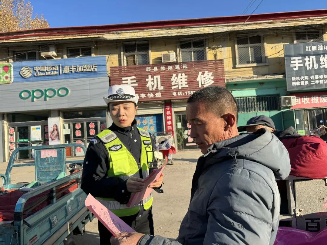 初冬的集市,热闹非凡。邯郸交巡警紧密结合出行特点和常见风险,重点针对骑乘摩托车和电动自行车不佩戴安全头盔、酒驾醉驾等突出交通违法行为的危害性进行讲解。