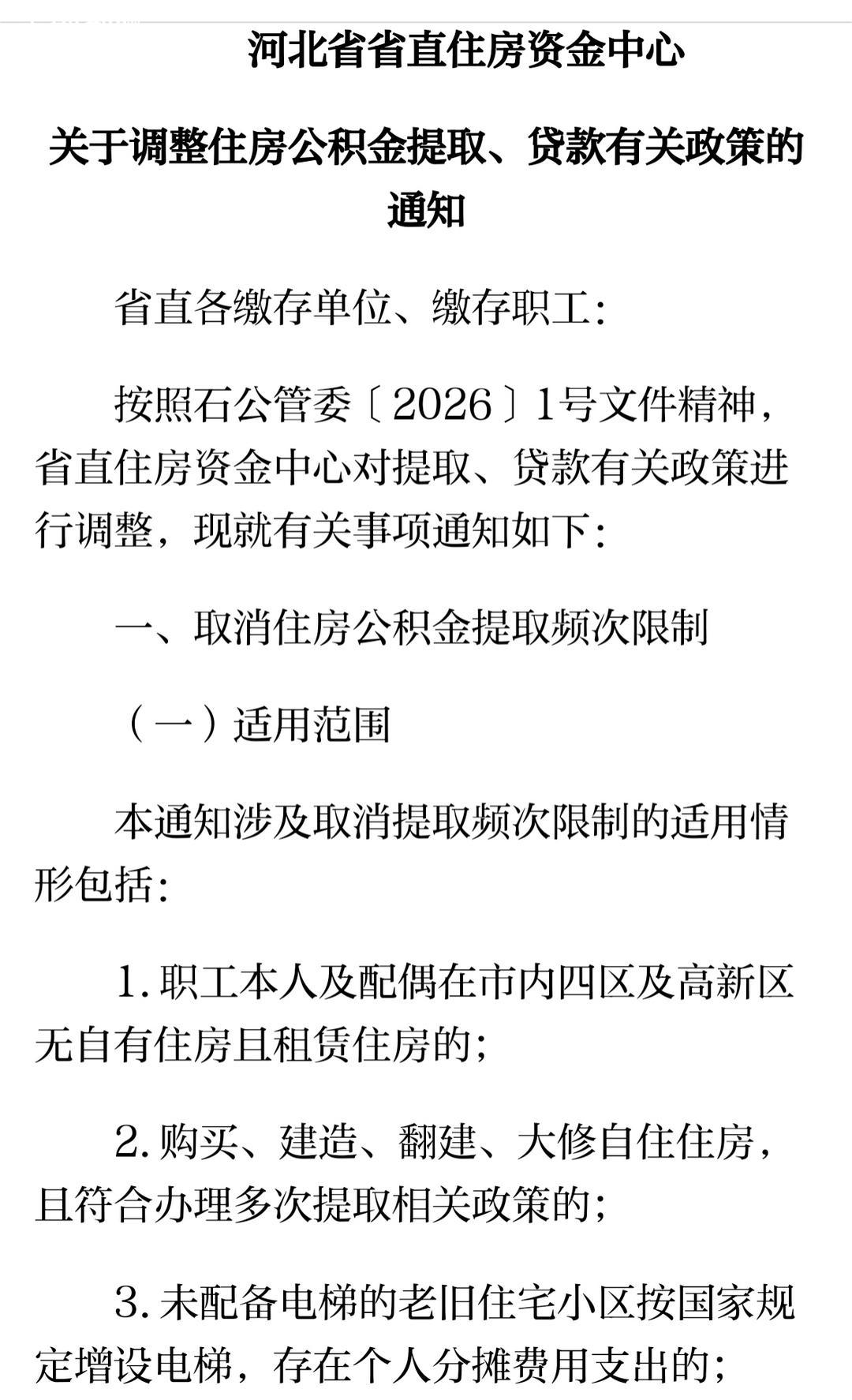 取消公积金提取频次限制!河北省省直住房资金中心最新通知